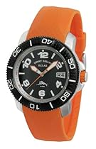 Tommy Bahama Men's RLX1084 RELAX Sport Pelican Bayshore Strap Watch indices mark surrounding minute track, Analog date aperture at three o'clock, Unidirectional black stainless steel bezel with engraved white Arabic numbers and baton markers, Brushed/polished silver-tone stainless steel round case, Textured steel crown with orange detailing, Stainless steel screw-down caseback, 100 meters/330 feet water resistant Stainless steel case, stainless steel stationary bezel Orange polyurethane strap ...